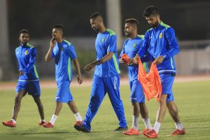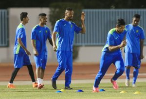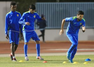 وبعد نهاية التدريب انتظم الفريق بمعسكره في أحد فنادق الدمام حتى موعد المباراة التي ستنطلق غداً الثلاثاء عند الساعة 6,30 م على ملعب نادي النهضة .