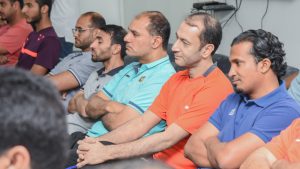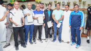 وبعد نهاية ورشة العمل الثرية بالمعلومات الجديدة في عالم اللياقة البدنية والسرعة سلّم مصطفى راشد عضو مجلس إدارة نادي الخليج شهادات على المشاركين ثم التقطوا صورة جماعية تذكارية مع البروفيسور طارق البناي .