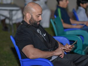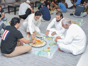 وتلاه بكلمة الكابتن حميد البقال والكابتن هاني هلال بتشجيع اخوانهم اللاعبين ومن ثم تناولوا وجبة العشاء