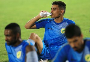 وبعد نهاية التدريب انتظم لاعبي الفريق في المعسكر الذي أقيم في أحد فنادق الدمام استعدادا لمواجهة العروبة الهامة.