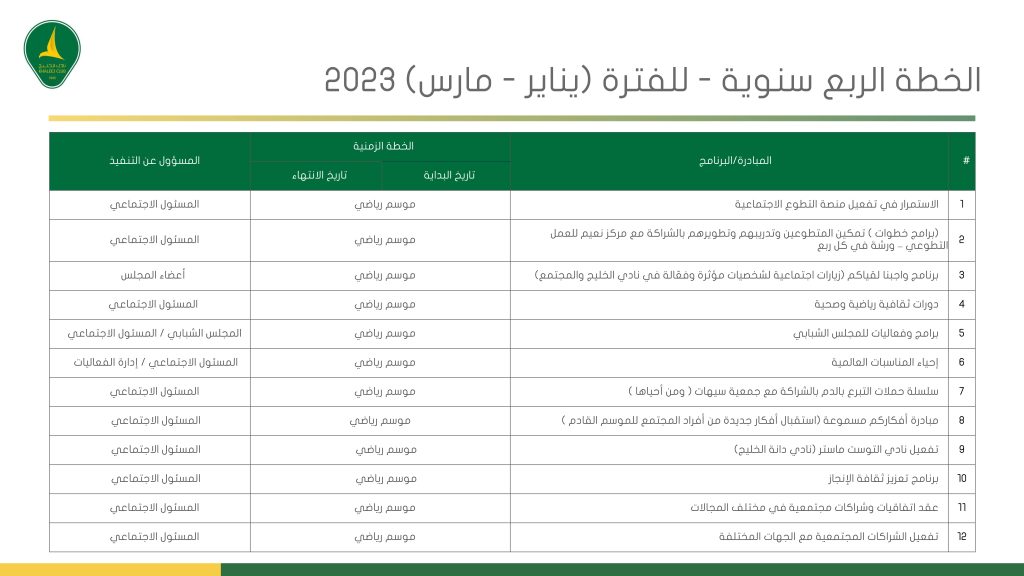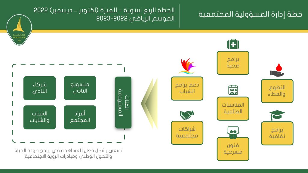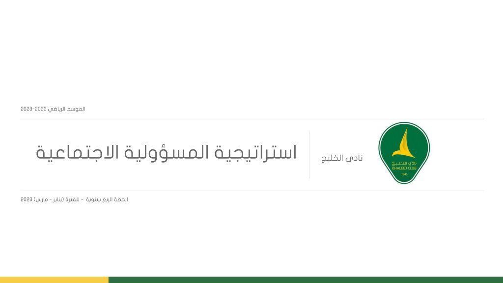 استراتيجية المسؤولية الاجتماعية بنادي الخليج لموسم 2023 م محمد السبع 30/03/2023 أخبار المجتمع / أخبار النادي / أنشطة وفعاليات مركز حسن هلال الإعلامي بنادي الخليج https://khaleejclub.sa/wp-content/uploads/2023/03/Social-Responsibility-Strategy.pdf Continue Reading Previous Postنادي الخليج يعلن أهداف استراتيجيته للموسم 2023Next Postالتقرير الربع السنوي للمسؤولية الاجتماعية ( يناير – فبراير – مارس ) 2023