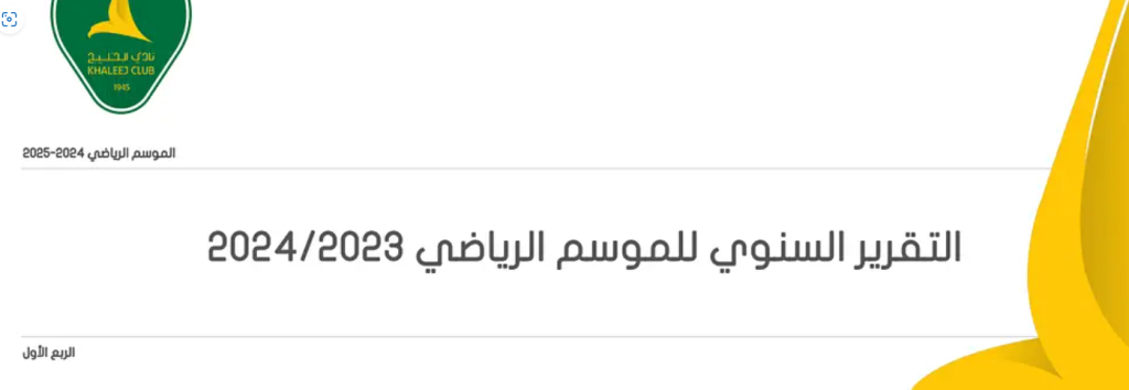 التقرير السنوي لنادي الخليج للموسم الريـاضي 2023-2024 rawan ahmed 25/03/2025 أخبار النادي يمكنكم الإطلاع على التقرير السنوي لنادي الخليـج للموسم الرياضي 2023-2024 من خلال الرابط أدنـاه: https://khaleejclub.sa/wp-content/uploads/2024/09/2-%D8%A7%D9%84%D8%AA%D9%82%D8%B1%D9%8A%D8%B1-%D8%A7%D9%84%D8%B3%D9%86%D9%88%D9%8A-%D9%84%D9%84%D9%85%D9%88%D8%B3%D9%85-2023-2024.pdf Continue Reading Previous Postإدارة الموارد البشرية تقيم بطولة الإدارة التنفيذيةNext Postالتقرير السنوي للموسم الرياضي