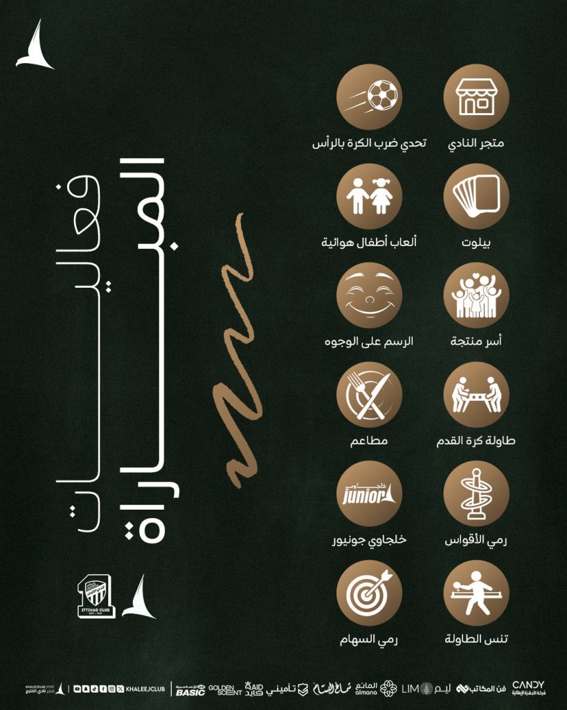يستقبل نادي الخليج جماهيره اليوم في ملعب الأمير محمد بن فهد بالدمام بفعاليات ترفيهية متنوعة قبل مباراة الفريق أمام الاتحاد في دوري روشن السعودي.