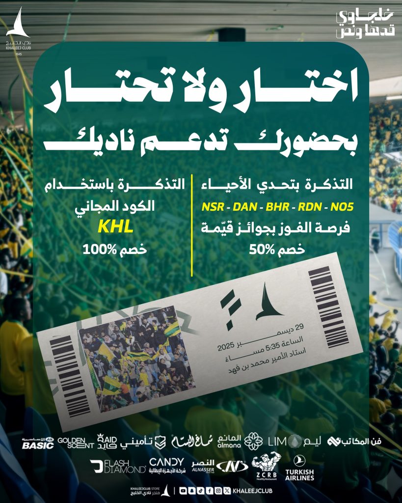 وأكد نادي الخليج أن هذه المبادرة تأتي في إطار تعزيز التفاعل الجماهيري، ورفع نسبة الحضور في المدرجات، مشددًا على أن دعم الجماهير يمثل عنصرًا أساسيًا في مسيرة الفريق خلال المرحلة المقبلة.