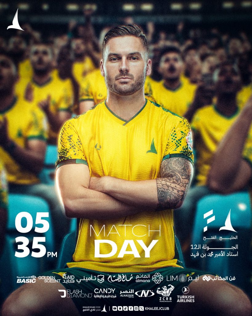 يخوض الفريق الأول لكرة القدم بنادي الخليج مواجهة مهمة أمام نظيره الفتح، مساء اليوم، ضمن منافسات دوري روشن السعودي، وذلك على ملعب استاد الأمير محمد بن فهد بالدمام. وتنطلق المباراة عند الساعة 5:35 مساءً، وسط تطلعات الخليج لمواصلة تقديم الأداء الإيجابي وحصد نتيجة تعكس جاهزية الفريق، بدعم جماهيري منتظر من المدرجات.