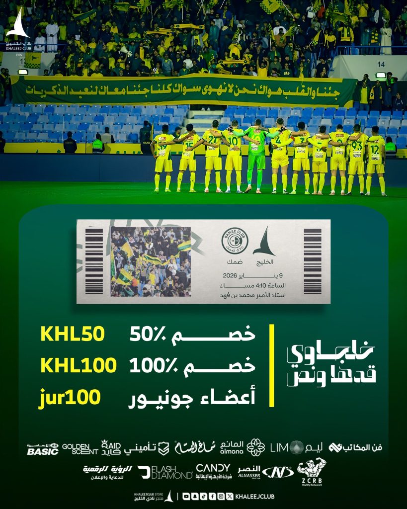 ناديكم ودايم ماله غنى عنكم 💌 rawan ahmed 09/01/2026 أخبار النادي ناديكم ودايم ماله غنى عنكم 💌 🗓️ تذاكر عصر الجمعة متاحة الآن🎟️ webook.com/ar-SA/events/r… #خلجاويقدهاونص | #الخليج_ضمك ⚽️ Continue Reading Previous Postالخليج يستضيف الفتح اليوم ضمن منافسات دوري روشن السعوديNext Postتقدّمنا خطـوة 👋🏻وكل مرة جمهورنا الوفي يكون في الموعد