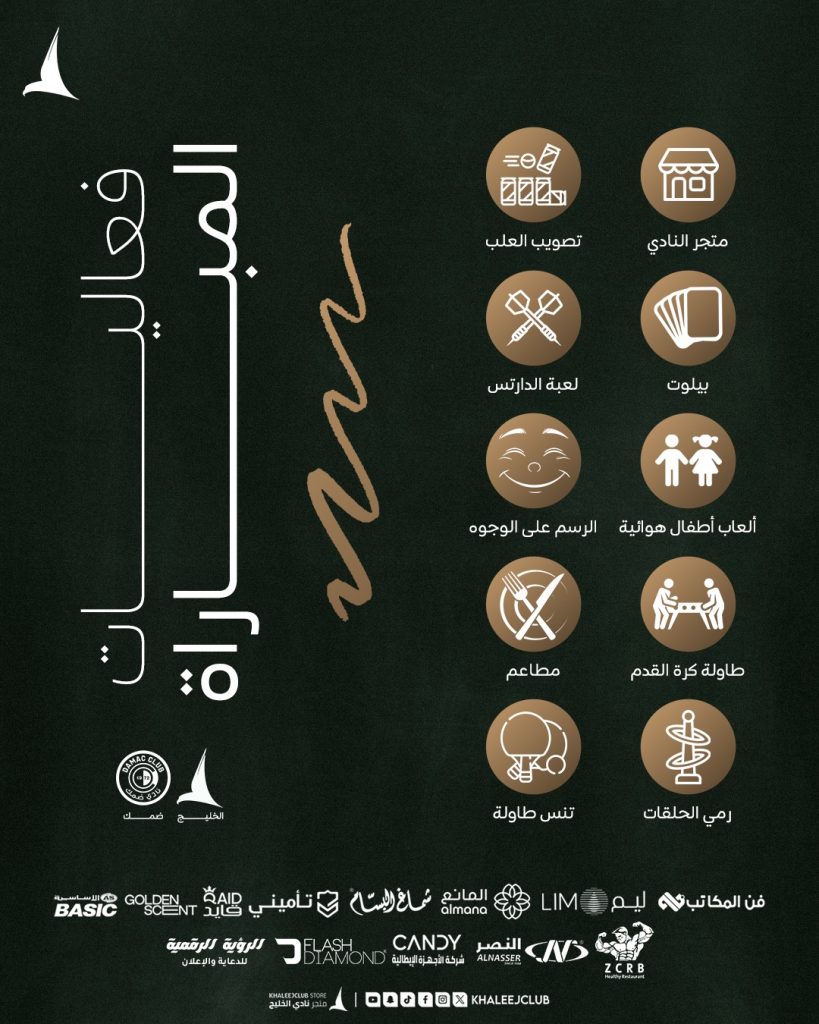 👨👨👧👦 فعاليات متنوعة rawan ahmed 09/01/2026 أخبار النادي 👨👨👧👦 فعاليات متنوعة☁️ أجــواء جـميلـة🆓 إجـــازة مدارس 🏟️ استاد الأمير محمد بن فهد – الدمام #الخليج_ضمك | #دوري_روشن_السعودي ⚽️ Continue Reading Previous Post🎙️ السيـد «دونيس» يتحدث في المؤتمر الصحفيNext Postتعال وشجّع #نادي_الخليج في لقاء #الخليج_ضمك 👏🏻