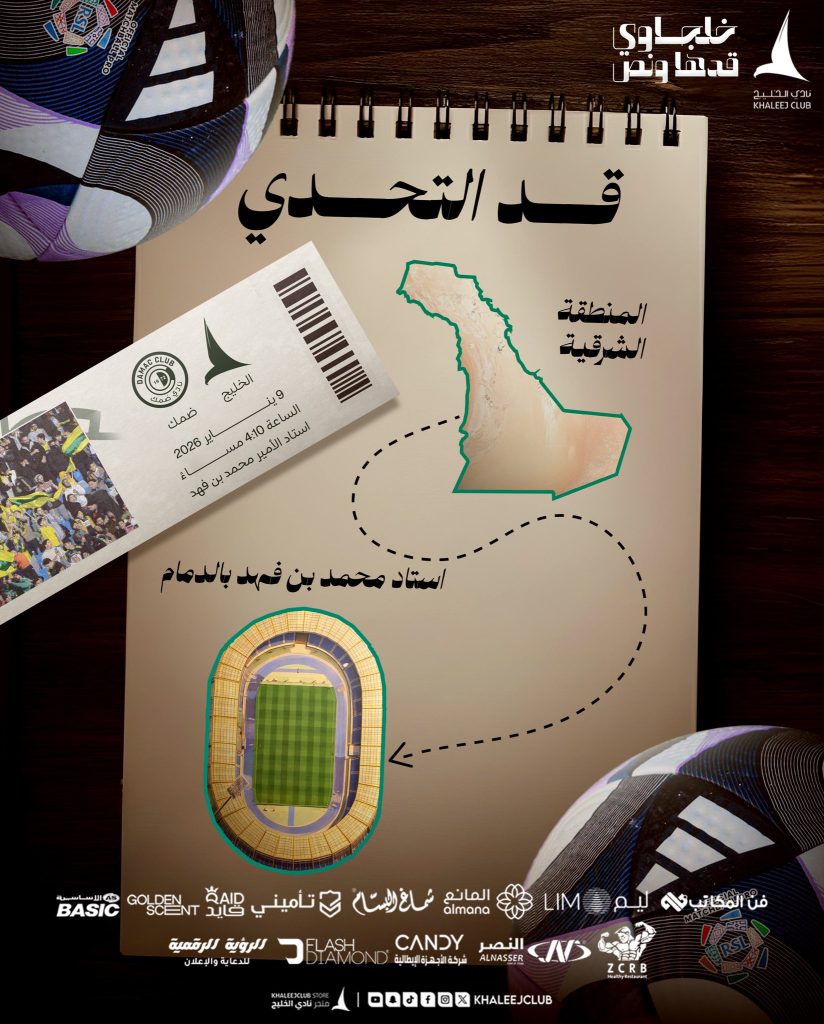 🗓️ موعدنـا العصر في الدمـام rawan ahmed 09/01/2026 أخبار النادي 🗓️ موعدنـا العصر في الدمـام🎟️ webook.com/ar-SA/events/r… #خلجاوي_قدهاونص 🔰👏🏻#تحدي_العوائل | #الخليجضمك 🌇 Continue Reading Previous Postالاستعدادات تكتمل لمواجهة «ضمك» 🔜Next Postبتوقيت الرابعة | يـــوم الــدانــة 🗓️