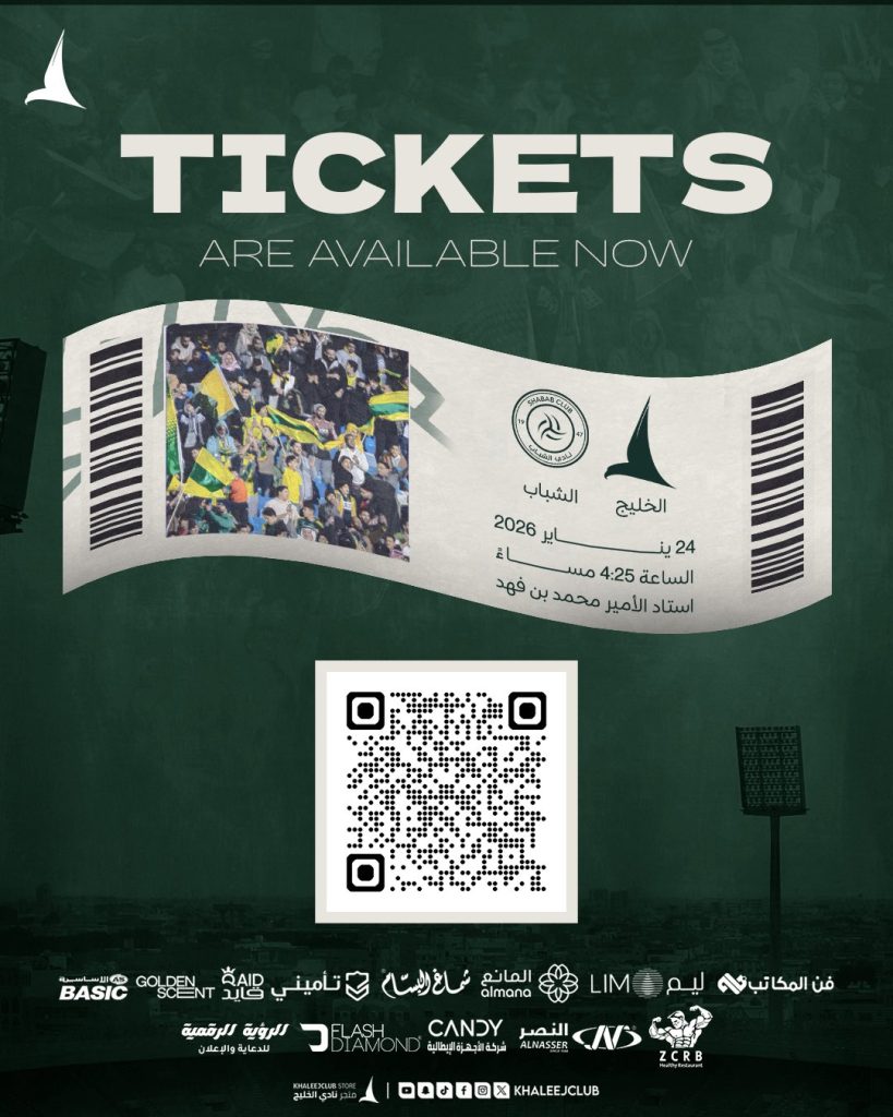 تذاكرنا متاحة الآن لمواجهة #الخليج_الشباب rawan ahmed 22/01/2026 أخبار النادي Continue Reading Previous Postأصحاب، أهل، وأحباب نجتمع بحبنا الحقيقي .. ونهتف بصوت واحدNext Postتذاكر وعروض مباراة الخليج والشباب متاحة الآن