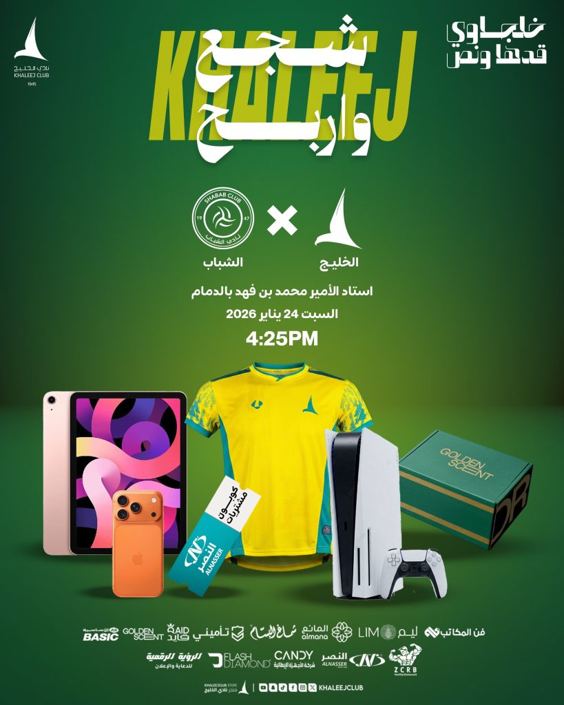 شجع واربح | الخليج x الشباب rawan ahmed 23/01/2026 أخبار النادي Continue Reading Previous Postفعاليات المباراة | الخليج x الشبابNext Postالخليج ما نتابعه .. الخليج نعيشه