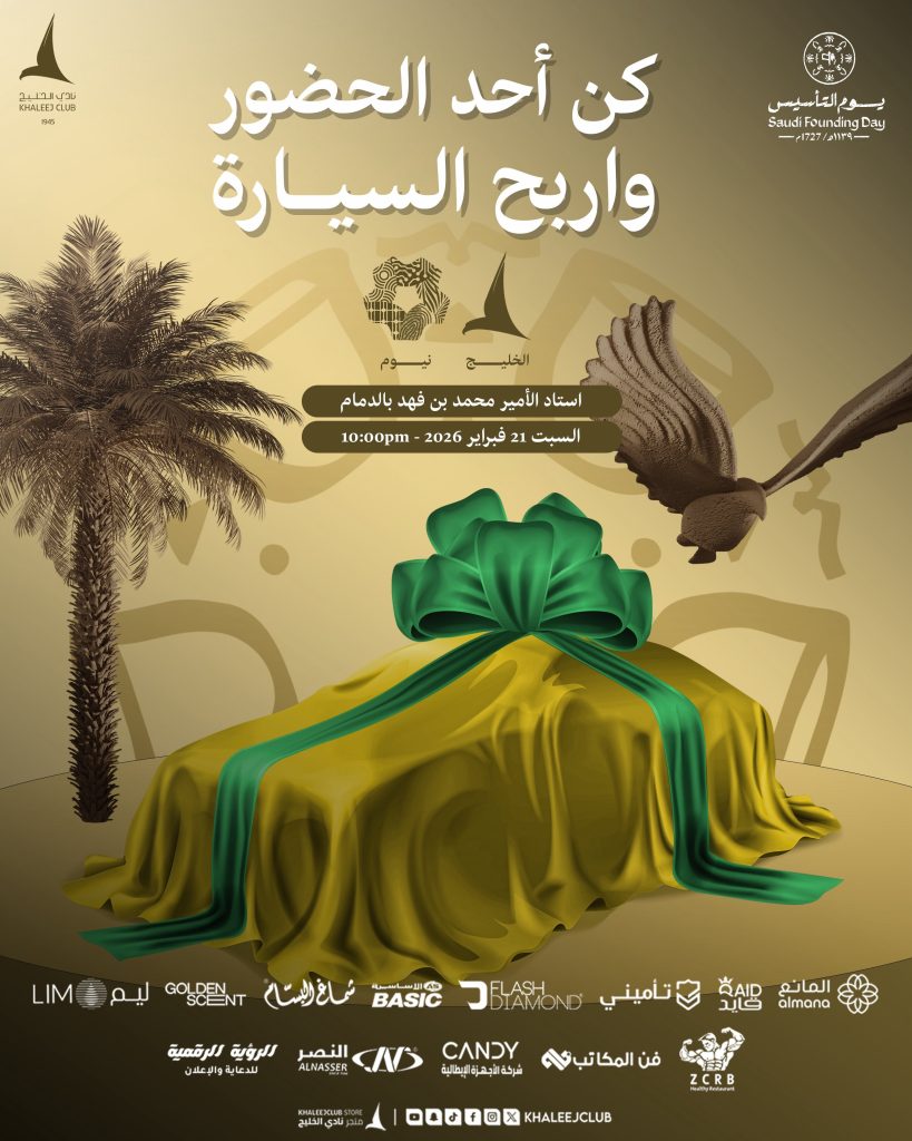 كن أحد الحضور واربح السيارة | الخليج ونيوم rawan ahmed 21/02/2026 أخبار النادي Continue Reading Previous Postتوقع واربح | الخليج ونيومNext Postفعاليات جولة #يوم_التأسيس | الخليج ونيوم