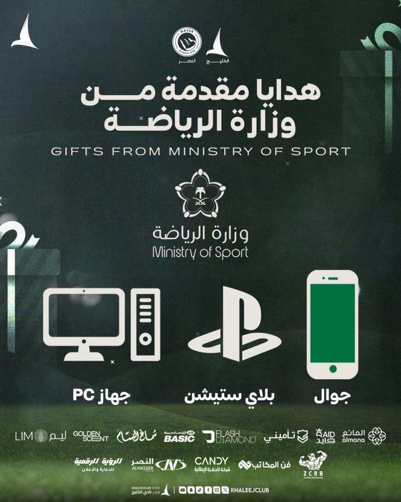 هدايا وزارة الرياضة | الخليج والنصر rawan ahmed 14/03/2026 أخبار النادي Continue Reading Previous Postمسابقة تحدي المهارات | الخليج والنصرNext Postساند الدانة | الخليج والنصر