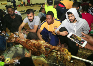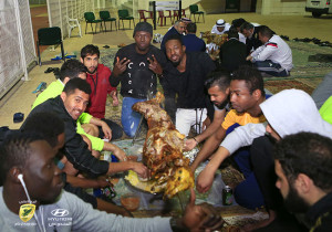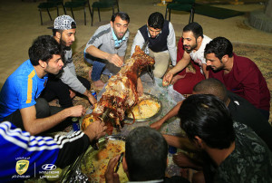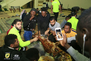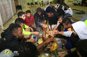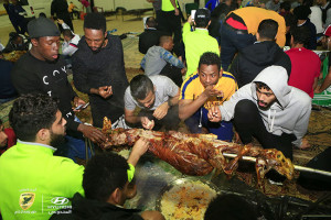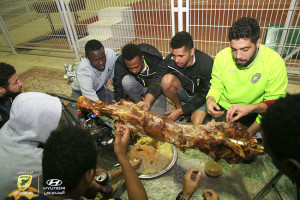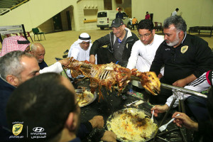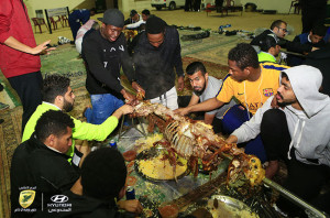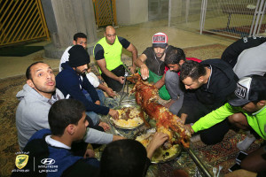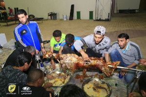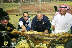 وبعد نهاية التدريب أقامت إدارة نادي الخليج مأدبة عشاء للفريق الاول لكرة القدم وسط أجواء رائعة حضرها فوزي الباشا رئيس النادي .