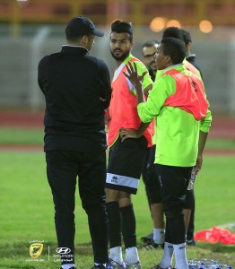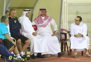 وشهد التدريب حضور عبد العزيز التويجري مدير عام الاعلام بقنوات mbc pro sport إلى جانب فوزي الباشا رئيس نادي الخليج والداعم الخلجاوي نزيه النصر نائب رئيس النادي سابقاً وحسين الصادق مدير الفريق وجعفر السليس مدير الاحتراف وعلي السبع اداري الفريق حيث تناقش التويجري مع الباشا حول التعاون المشترك ومدى تعزيز العلاقة لما فيه مصلحة الطرفين .