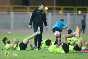 وكان التدريب الذي قاده التونسي جلال قادري المدير الفني للفريق قد شهد مشاركة جميع اللاعبين وقد اشتمل بعد الإطالات على مناورة في منتصف الملعب ثم اختتم اللاعبين التدريب بتنفيذ الكرات الثابته .