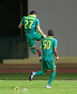 أفضلية لاصحاب الأرض نظراً لانتشاره السليم ولاحت له عدة فرص ابرزها رأسيه الاردني ابراهيم الزواهرة ولكن يقضة النجعي أفسدت خطورتها في الدقيقة 13.