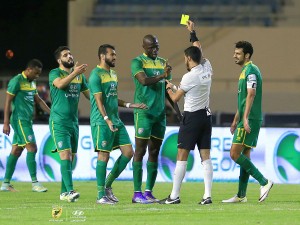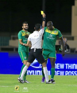 اشهر حكم اللقاء عبد الرحمن السلطان البطاقة الصفراء الثانية واتبعها بالحمراء في وجه مدافع الخليج امينو بوبا وسط احتجاج من لاعبي واحتياط الخليج نظراً لعكسية القرار الخاطئ ، بادر مباشرة المدرب قادري باشراك المدافع حسام الجدعاني بديلاً من علاء حجّي .