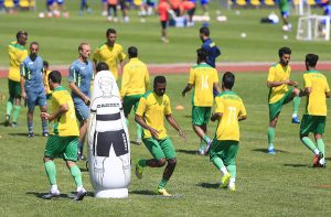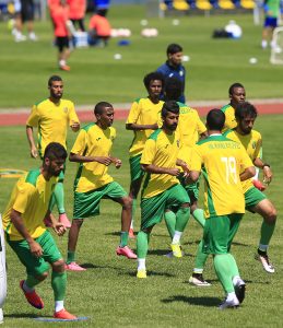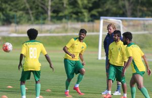 فيما كان التدريب المسائي خفيفاً حيث استكمل الفريق التدريب التكتيكي وتنفيذ الكرات الثابته والمتحركة ولكن على المرمى الصغير فيما اختتم التدريب بتمرين ترفيهي بلعب كرة المضرب ولكن باستخدام القدم والرأس .