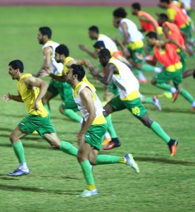 وبعد نهاية التدريب احتفل لاعبي الفريق بالحارس علي الاحسائي بمناسبة قدوم مولوده البكر والذي اطلق عليه اسم حسن جعله الله من مواليد السعادة .
