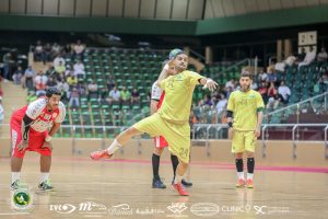 وشهد الشوط الأول تأخر الخليج في فترات اللقاء حيث استطاع العربي أن يتقدم بفضل حضوره الذهني قبل أن يعود الخليج مع نهاية الشوط الأول ويتقدم بفارق هدف وحيد (١٦/١٥).