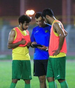 وكان التدريب الذي قاده التونسي جلال قادري المدير الفني للفريق قد اشتمل على بعض التمارين اللياقية ثم ركَّز على الجانب الفني حيث أجرى الفريق مناورة من أربع أشواط ففي البداية لعب الفريق على منتصف الملعب مناورة على أربع أبواب صغيرة ثم لعب بقية الأشواط على ثلاثة أبواب كبيرة وطبق خلالها بعض الجمل التكتيكية.