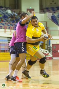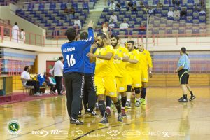 وفي الشوط الثاني واصل الفريق تقدمه وسط روح معنوية عالية حيث وصل الفارق الى 8 أهداف (28/20) في الدقيقة 20 وحافظ الفريق على تقدمه الى نهاية اللقاء بنتيجة (33/27).