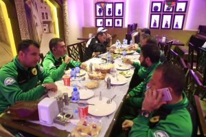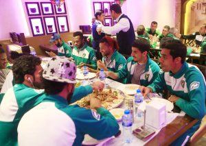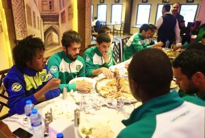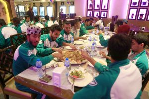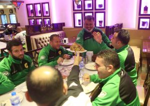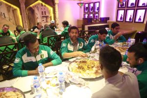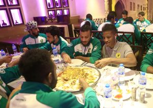 وبعد نهاية التدريب تناول الفريق الوجبة في أحد المطاعم ثم توجه عبر الحافلة إلى حفر الباطن لإقامة معسكر إعدادي يتخلله محاضرة فنية وتدريب ختامي على ملعب الباطن الذي سيحتضن اللقاء المرتقب .