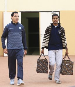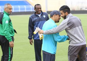 حيث سعى التونسي جلال قادري المدير الفني للفريق من خلال التدريب وضع اللمسات الأخيرة من خلال تطبيق بعض الجمل الفنية والتعود على أرضية الملعب الصناعية كما تخلل التدريب تمرين الكرة باليد والقدم وتسجيل الهدف بالرأس .