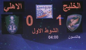 سجل للخليج سانتوس د 4 وديايكيتي د 81 فيما احرز هدفي الأهلي عمر السومة من ركلة جزاء د 40 وعبد الفتاح عسيري د 44.