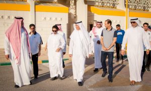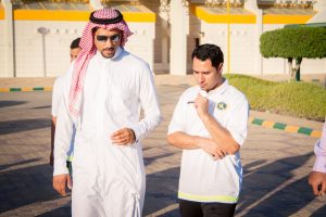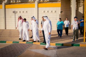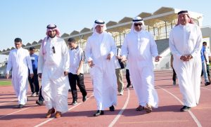 ثم قام بجولة حول مضمار الجري والذي يعاني من اضرار كبيرة حيث أنه عمره الافتراضي قد انتهى، وقال أنه على اطلاع بمخاطبات نادي الخليج مع الهيئة العامة للرياضة وذلك من أجل تغيير أرضية المضمار، كما سيقوم الاتحاد السعودي لألعاب القوى بدعم الملف على نفقته في حال تعثر الملف مع الهيئة العامة للرياضة.