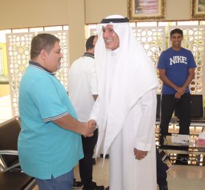 وكان في استقبال العميد والوفد المرافق ، الأستاذ علي المشامع نائب رئيس النادي والأستاذ علي السيهاتي أمين عام النادي والفريق الاداري والفني للعبة العاب القوى بالنادي.