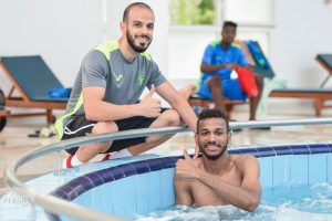 وفي الفترة المسائية فضل المدرب الإكتفاء بتمارين خفيفة للاعبين الذين شاركوا بفعالية في المباراة على أن يخضعوا لحصة إستشفاء في المسبح، بينما شارك بقية اللاعبون في تمارين خاصة مطولة.