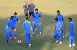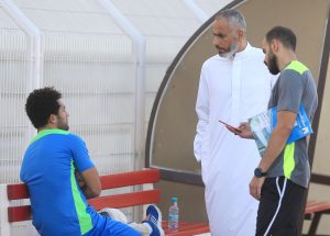 وشهد التدريب غياب مشعل العنزي حيث غادر إلى الرياض لتلقي واجب العزاء في ابن خاله على ان ينتظم في التدريب الاخير الذي سيقام عصر غداً (الاثنين) في الملعب الرديف الصناعي بنادي الخليج قبل أن يغادر الفريق عند الساعة الثامنة من مطار الملك فهد بالدمام متجهين إلى أبها لمواجهة ضمك الهامة .